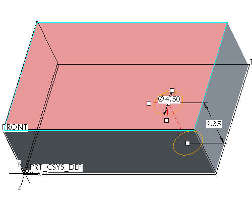 这将在曲面上创建用来定义孔位置的尺寸。 |