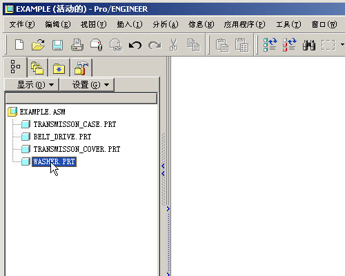 在模型树中左键单击垫圈零件,如下图所示。垫圈在图形窗口中将以红色加亮显示。
